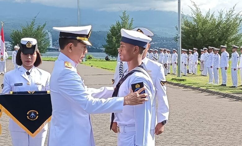 Manado || Koranprogresif.id, 7 Maret 2025 Setelah menempuh Pendidikan Dasar Militer (Sarmil) dan Pendidikan Dasar Golongan (Sargol) selama empat bulan di Satuan Pendidikan 4 Manado, sebanyak 100 orang Siswa Pendidikan Pertama Tamtama (Dikmata) TNI Angkatan Laut Angkatan 44 Gelombang 2 dilantik dan diambil sumpahnya oleh Wakil Komandan Komando Pembinaan Dokrin, Pendidikan Dan Latihan TNI Angkatan Laut (Wadan Kodiklatal) Laksamana Muda TNI I Gung Putu Alit Jaya dalam suatu upacara yang berlangsung di Lapangan Pohon Kasih Kawasan Megamas Manado. Jumat (7/3)