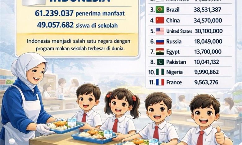 JAKARTA || Koranprogresif.id – Indonesia mencatatkan pencapaian penting dalam upaya meningkatkan kualitas gizi generasi muda melalui Program Makan Bergizi Gratis (MBG). Berdasarkan data global program pangan sekolah yang dirilis oleh World Food Programme (WFP), Indonesia kini menjadi negara dengan program makan sekolah terbesar kedua di dunia.