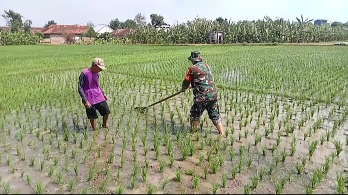 Babinsa Kodim Ponorogo, Bantu Petani Penyiangan Gulma Tanaman Padi