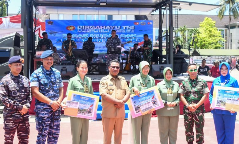 TNI Prima-TNI Rakyat-Indonesia Maju, Sinergi TNI di Maluku Gelar Pasar Murah dan Pembagian Sembako Songsong HUT Ke-80 TNI