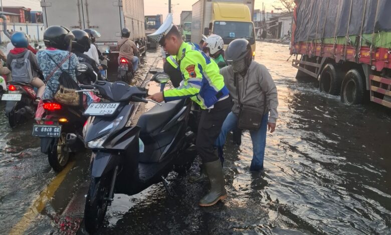 Kasat Lantas Polres Demak, AKP Thoriq Azis, melalui Kanit Turjawali, Iptu Khoirul mengatakan bahwa, pihaknya telah menempatkan anggota Satlantas Polres Demak di jalur yang terendam banjir rob tersebut.