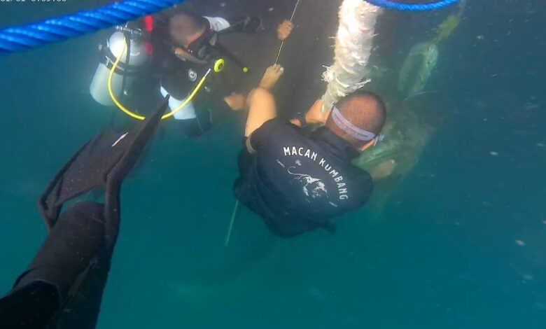 Meski harus menghadapi arus bawah laut yang cukup kuat serta pandangan yang terbatas, tim selam berhasil melepaskan tali yang melilit bagian propeler kapal.