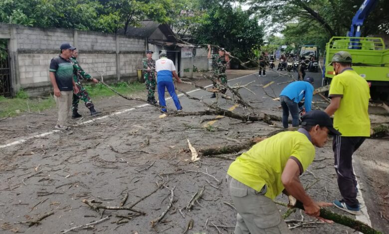 Aksi Sigap TNI, Polri dan BPBD Trenggalek Amankan Jalan dari Ancaman Pohon Tumbang