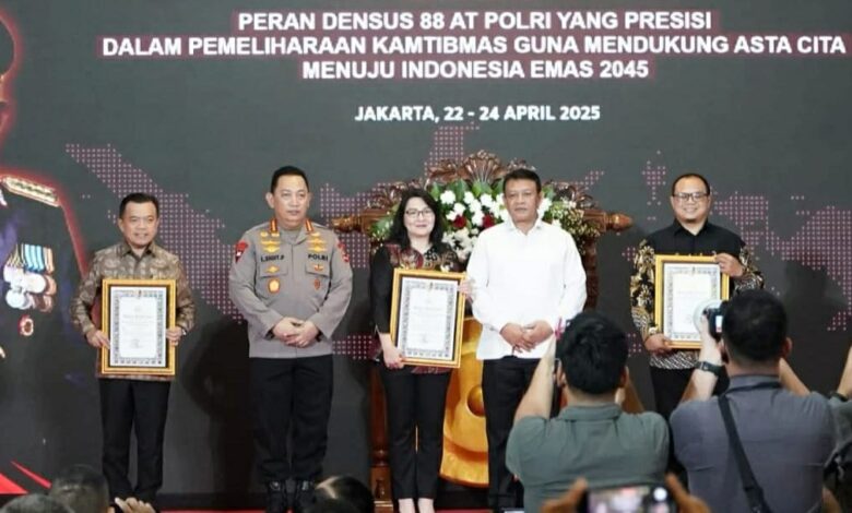 Penghargaan itu diberikan langsung dalam acara Rakernis Densus 88 AT Polri di Auditorium Sekolah Tinggi Ilmu Kepolisian (STIK) PTIK, Kebayoran Baru, Jakarta Selatan, pada Selasa (22 April 2025).