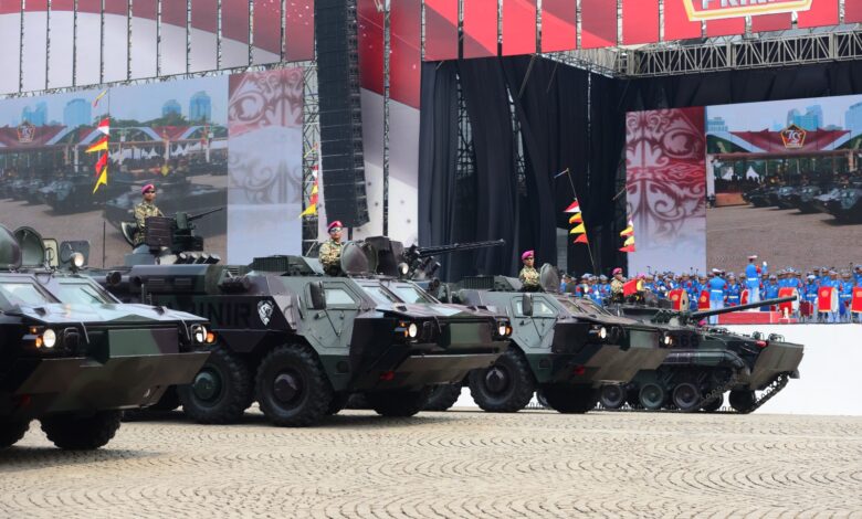 Jakarta || Koranprogresif.id, Alat Utama Sistem Senjata (Alutsista) jajaran Korps Marinir TNI Angkatan Laut ikuti defile kendaraan tempur dalam gladi bersih pertama Peringatan Hari Ulang Tahun (HUT) Ke 79 Tentara Nasional Indonesia (TNI) Tahun 2024 yang di gelar di Lapangan Silang Monas, Jakarta Pusat, Rabu. (02/10/2024).