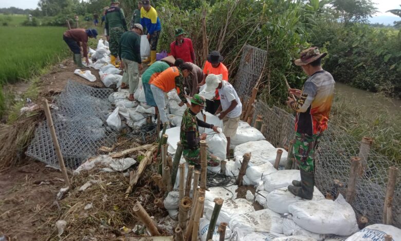 Anggota Koramil 20/Cawas Bersama Warga Perbaiki Tanggul Jebol Di Desa Bendungan
