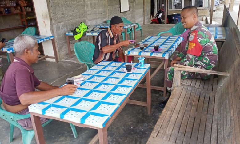 Aceh Barat || Koranprogresif.id, Sebagai upaya konkrit mempererat hubungan silaturahmi, Babinsa Posramil 05/PC Kodim 0105/Abar Sertu Saefudin memanfaatkan waktu senggangnya untuk melaksanakan kegiatan anjangsana atau Komunikasi Sosial (Komsos) dengan warga binaan bertempat disalah satu Warkop yang ada di Desa Krueng Beukah Kecamatan Pante Ceureumen, Sabtu (10/8/2024)