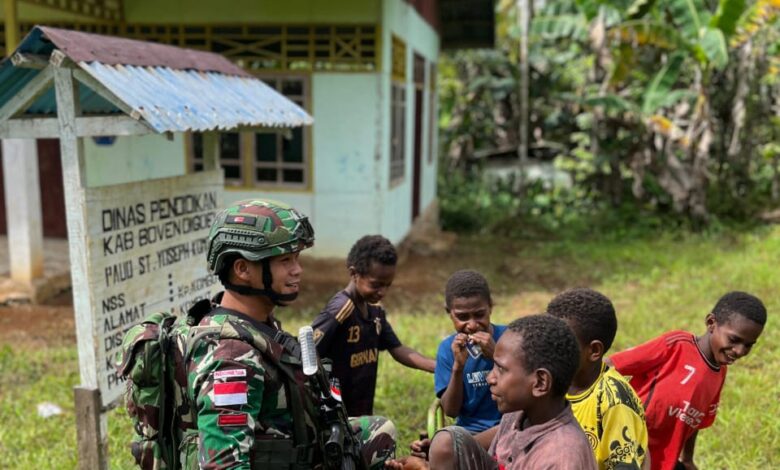 Boven Digoel – Suasana penuh kehangatan dan keceriaan menyelimuti Kampung Kombut, Distrik Kombut, Kabupaten Boven Digoel, ketika Satgas Pamtas Statis Yonif 126/KC Pos Kombut menggelar kegiatan anjangsana yang sarat makna, Selasa (17/6/2025).