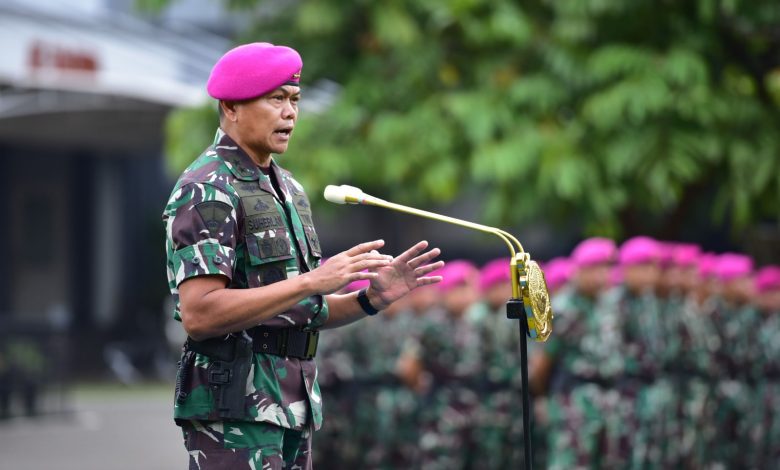Jakarta || Kepala Staf Korps Marinir (Kas Kormar) Mayor Jenderal TNI (Mar) Suherlan, S.E., M.M., M.Sc., CHRMP., memimpin Apel Khusus Prajurit dan PNS Mako Kormar yang digelar di Lapangan Hijau Mako Kormar, Kesatrian Marinir Jenderal KKO Ali Sadikin, Kwitang, Jakarta Pusat, Kamis (08/01/2026).