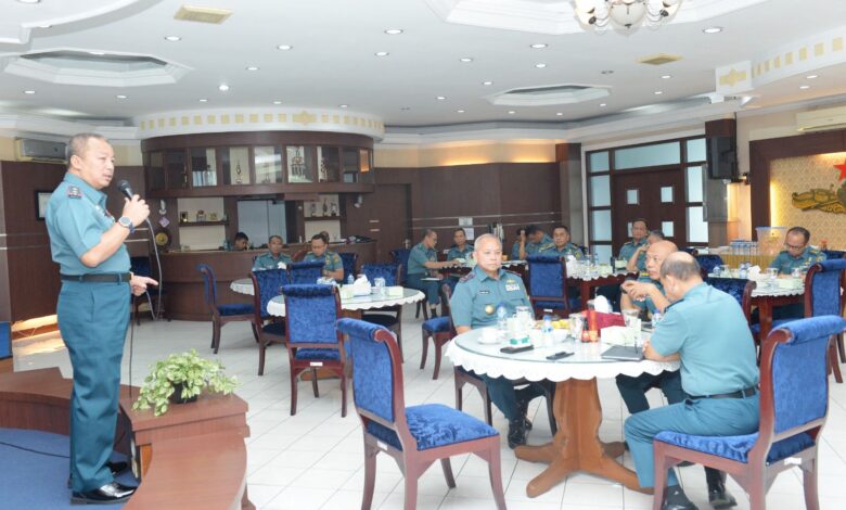 Komandan Sekolah Staf dan Komando Angkatan Laut (Danseskoal) Laksamana Muda TNI Ariantyo Condrowibowo memberikan pengarahan kepada segenap Pejabat Utama (PJU) Seskoal, Kepala Departemen (Kadep) dan Dosen Seskoal yang dilaksanakan di lounge room Perwira Seskoal, Cipulir, Kebayoran Lama, Jakarta Selatan, Senin (14/7/2025).