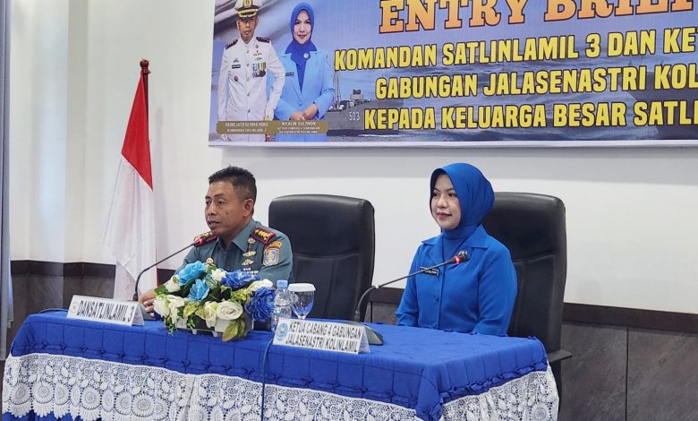 Makassar,- Awali penugasan sebagai Komandan Satlinlamil 3, Kolonel Laut (P) Sulthon Maula Firdaus, M.Tr.Opsla., didampingi Ketua Cabang 4 Gabungan Jalasenastri Kolinlamil Ny. Alin Sulthon melaksanakan Entry Briefing kepada Keluarga Besar Satlinlamil 3, bertempat di Ruang Rapat Mako Satlinlamil 3, Jalan Teuku Umar, Kota Makassar, Selasa (12/8/2025).