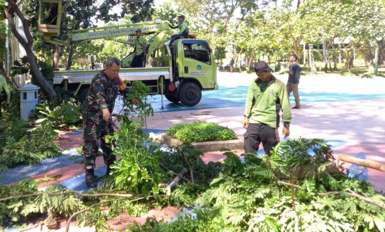 Di sisi lain Babinsa juga mengimbau bangi warga masyarakat yang sedang berkunjung ke Taman agar selalu berhati-hati, segera meninggalkan lokasi apabila terjadi hujan deras disertai angin kencang, sehingga menghindar terjadinya hal negatif (tertimpa pohon tumbang)”, ungkap Danramil 01/Menteng.