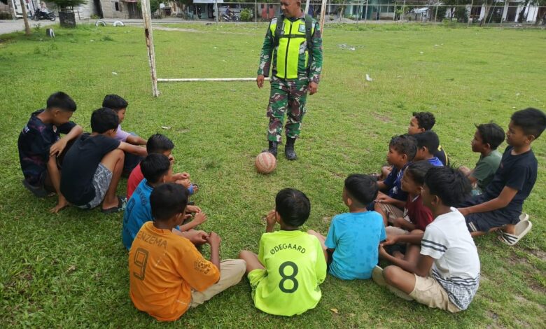 Babinsa Beri Motivasi Anak-Anak Bermain Sepak Bola