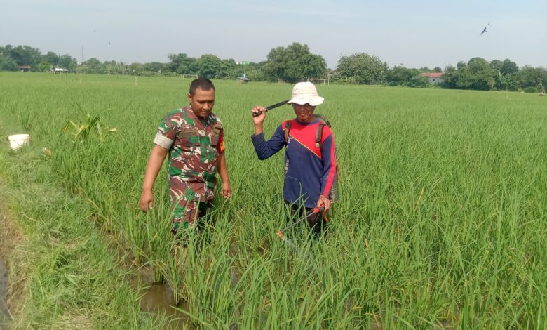 Babinsa Cimuning Dampingi Petani Rawat 12 Hektar Lahan Sawah: Wujud Nyata Ketahanan Pangan di Kota Bekasi