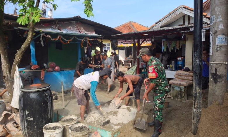 Tigaraksa || Koranprogresif.id, Anggota Koramil 02/Curug, Sertu Suhendra, melaksanakan kegiatan karya bakti bersama warga di Kampung Candu, RT 02 RW 07, Kelurahan Curug Kulon, Kecamatan Curug, Kabupaten Tangerang, Sabtu (3/5/2025). Kegiatan ini berfokus pada pengecoran Mushola Miftahul Huda sebagai upaya mendukung fasilitas ibadah warga setempat.