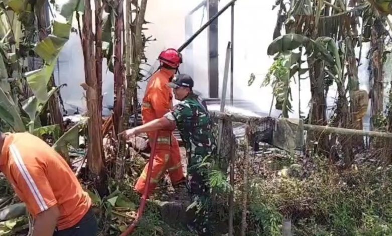 Babinsa dan Damkar Trenggalek, Padamkan Api di Dapur Rumah Warga Kerjo