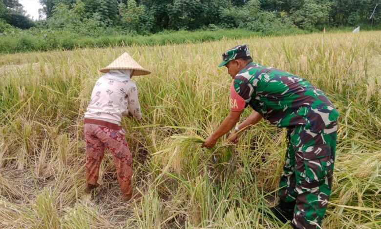 Babinsa Desa Kubang Bantu Petani Panen Raya