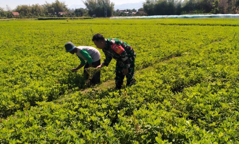 Babinsa Kodim 0802/Ponorogo Ikut Pembersihan Gulma Tanaman Kacang Tanah
