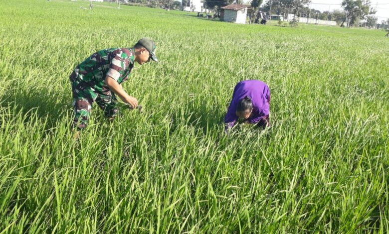Babinsa Kodim Ponorogo Bantu Petani Penyiangan Tanaman Padi