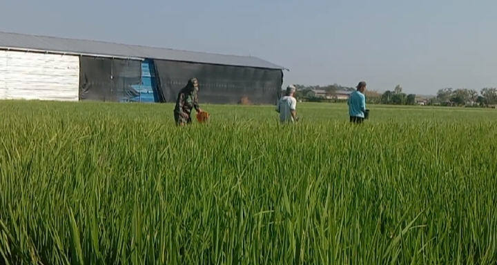 Babinsa Kodim Ponorogo Bantu Petani Pupuk Tanaman Padi