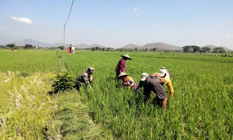 Babinsa Kodim Ponorogo, Bantu Petani Siangi Gulma Tanaman Padi