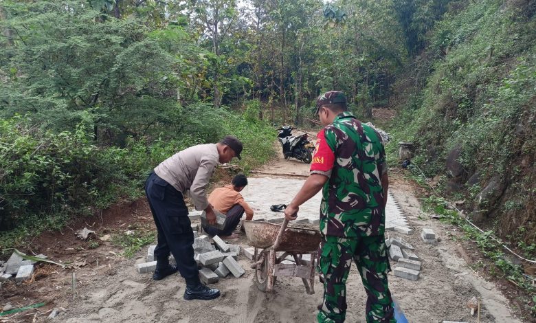 Babinsa Kodim Ponorogo Bantu Warga Pasang Paving