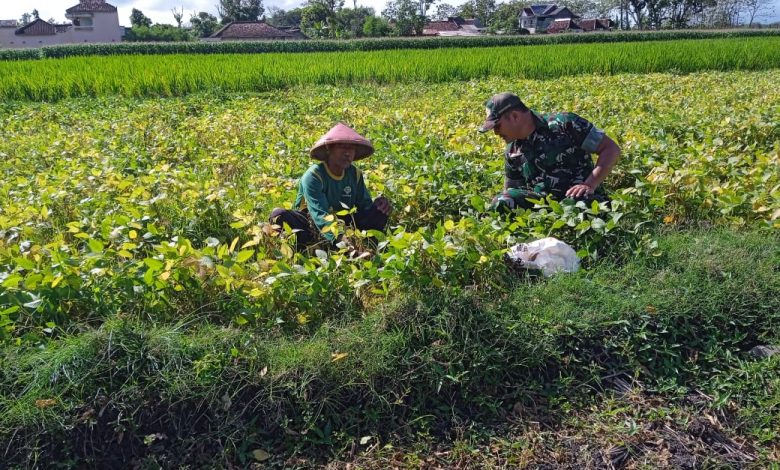 Babinsa Kodim Ponorogo, Dampingi Petani Rawat Tanaman Kedelai
