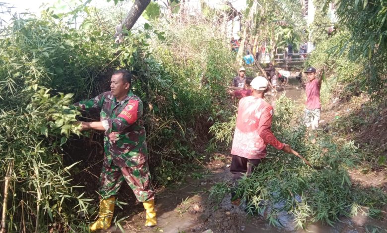 Babinsa Kodim Ponorogo Peduli Lingkungan, Bantu Warga Bersih Bersih Sungai