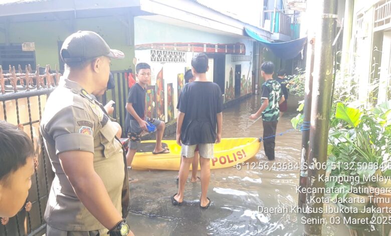 Pada kegiatan siaga banjir Danramil Jatinegara Mayor Arh M. Sianturi, perintahkan langsung Babinsa untuk siaga banjir dan membantu evakuasi warga ke lokasi yang aman serta kordinasi dengan Dinas Sosial untuk bantuan dukungan logistik pengungsi ditempat penampungan yang telah disiapkan.