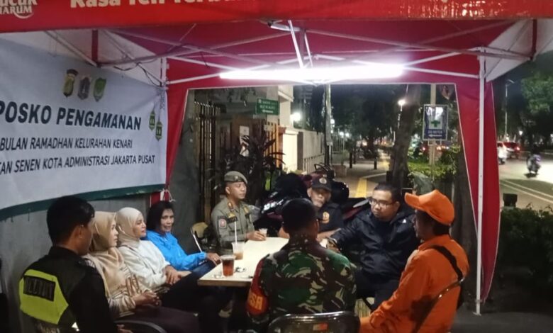 Senen || Koranprogresif.id, Dalam rangka menciptakan situasi yang aman dan kondusif selama bulan suci Ramadhan, Babinsa Koramil 03/Senen Serka Gondo Mono bersama unsur Tiga Pilar melaksanakan penjagaan Posko Pengamanan, bertempat di Jl. jambrut RT 08,RW 02 Kel. Kenari, Kec. Senen Jakarta Pusat. Minggu malam (02/3/2025)
