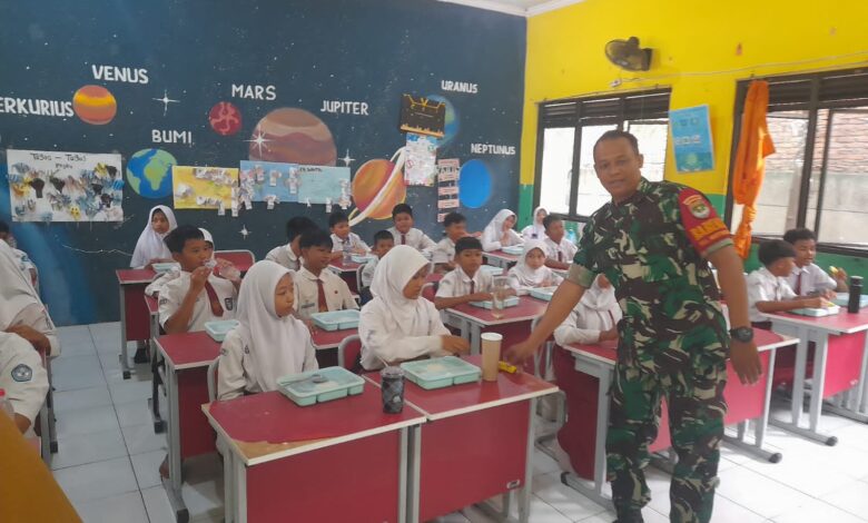 Babinsa Koramil 05/Bantargebang Dampingi Distribusi Program Makan Bergizi di 9 Sekolah Wilayah Mustikasari