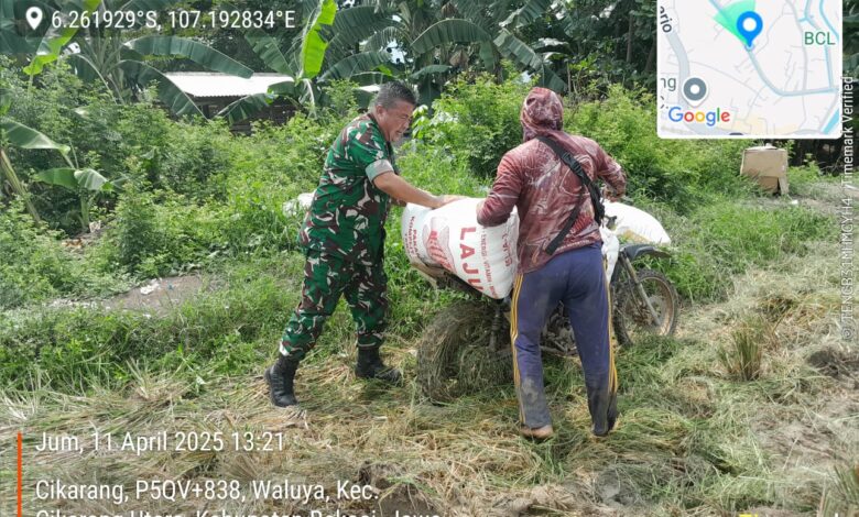 Babinsa Koramil 07/Cikarang Dampingi Panen dan Serap Gabah di Desa Waluya