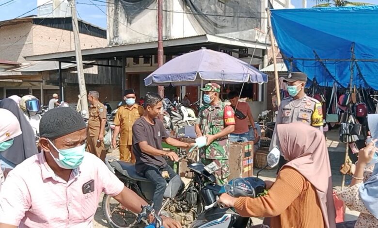 Babinsa Koramil 08/Bakongan Bagikan Masker, Respons Keluhan Debu Jalan Warga Kota Bahagia