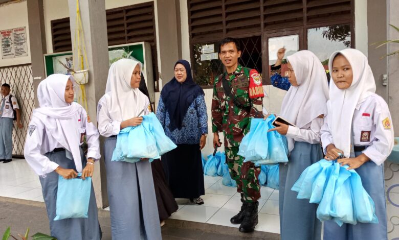 Babinsa Koramil 09/Mauk Kawal Distribusi 2.866 Porsi Makanan Bergizi untuk Pelajar Kemiri