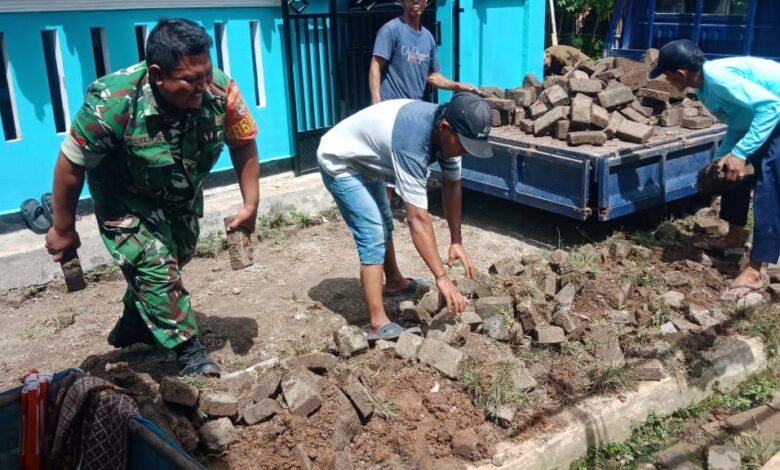 Warga pun menyambut baik kegiatan tersebut. Mereka bahu-membahu bersama Babinsa dalam memperbaiki jalan yang sebelumnya berlubang dan tergenang saat hujan.