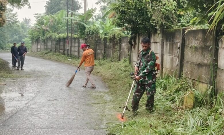 Tigaraksa || Koranprogresif.id, Babinsa Koramil 14/Panongan Kodim 0510/Tigaraksa Sertu Agung Subekti melaksanakan kegiatan kerja bakti bersama-sama masyarakat di wilayah binaannya dalam rangka TNI manunggal bersama rakyat di Desa Ranca Kalapa Kecamatan Panongan Kabupaten Tangerang Banten. Senin 14/4/2025
