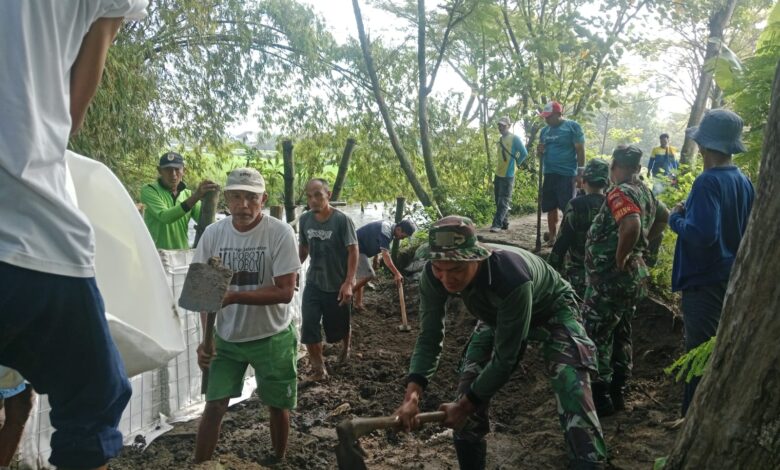 Babinsa Koramil 17/Karangdowo Bersama Warga Perbaiki Jalan Longsor Di Desa Tumpukan Klaten