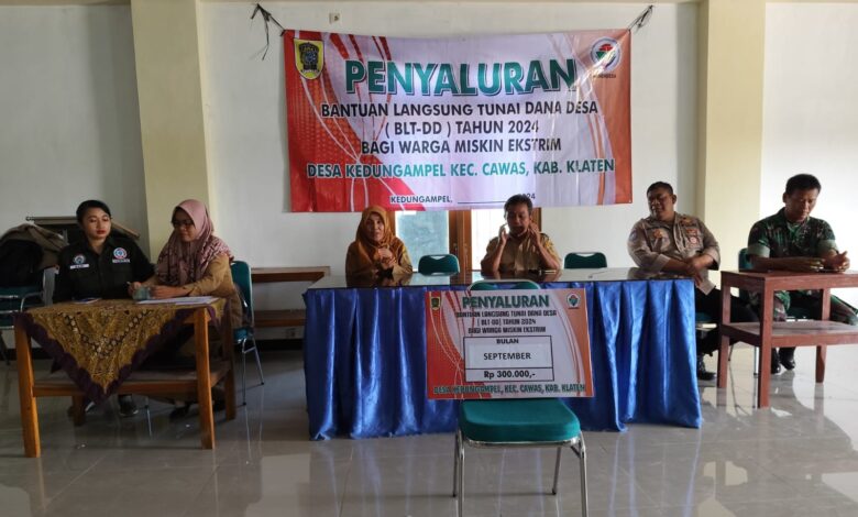 Klaten || Koranprogresif.id, Serka Murjiyo Babinsa Desa Kedungampel dari Koramil 20/Cawas Kodim 0723 Klaten turut serta dalam pendampingan dan pengamanan penyaluran Bantuan Langsung Tunai Dana Desa (BLT-DD) Desa Kedungampel untuk bulan September 2024. Kegiatan penyaluran berlangsung di balai desa Kedungampel dan dihadiri oleh Lasiem, Kasi PMD Kecamatan Cawas, Kepala Desa Kedungampel, serta perangkat desa. Senin, (09/09/2024)