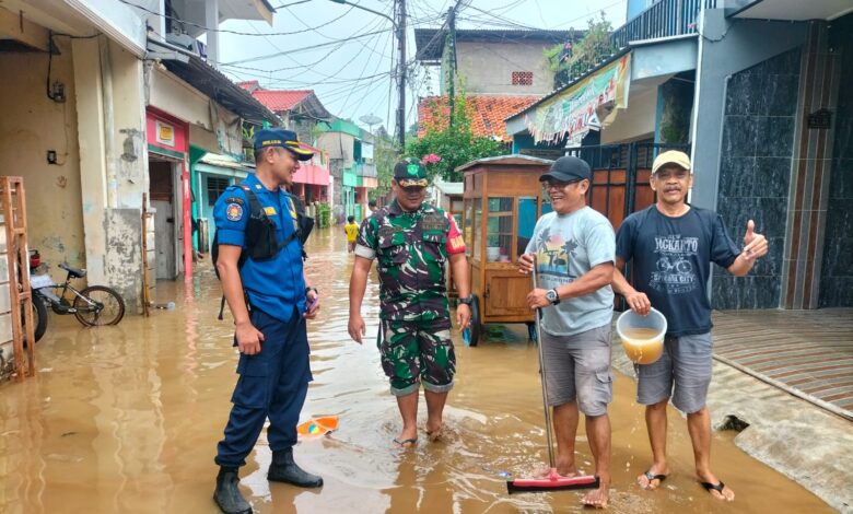 Jakarta || Koranprogresif.id, Kodim 0505/Jakarta Timur – Dalam rangka membantu kesulitan rakyat di sekelilingnya, Babinsa Koramil Kramat Jati membantu warga yang terkena musibah banjir di wilayah binaannya akibat curah hujan yang tinggi, Senin malam (03/03/25).