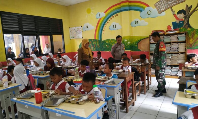 Tigaraksa || Koranprogresif.id, Dua Babinsa dari Koramil 14/Panongan, Kodim 0510/Tigaraksa, yakni Sertu Trio Wahyudi dan Serda Tunas Isnantoro, bersama Bhabinkamtibmas Desa Panongan Aipda Herman, melaksanakan monitoring program makan bergizi gratis kepada siswa-siswi SDN 1 Panongan, Selasa (10/06/2025), di Kecamatan Panongan, Kabupaten Tangerang.