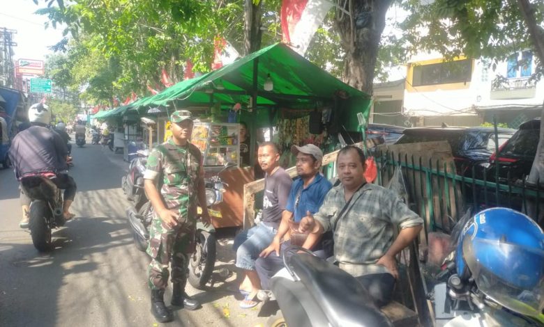 Babinsa Serka Suharno Komsos dan Himbau Masyarakat Untuk Kibarkan Sang Merah Putih