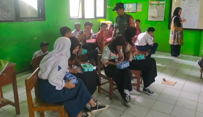 Babinsa Sukamantri dan Kutajaya Pastikan Distribusi 3004 Porsi Makanan Bergizi Lancar