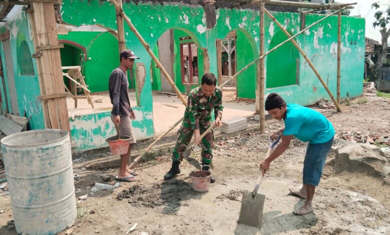 Babinsa Sukatani Gotong Royong Rehab Musolah Bersama Warga Cisoka