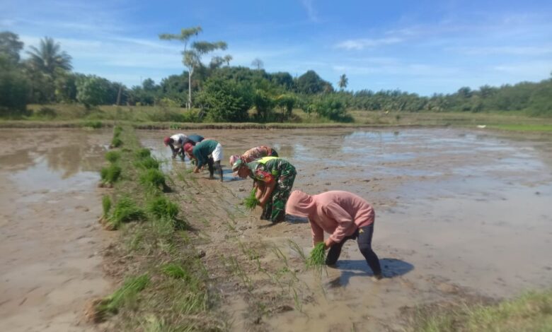 Babinsa Wilayah Korem 012/TU Aktif Dukung Program Ketahanan Pangan, Turun ke Sawah Dampingi Petani Tanam Padi Perdana