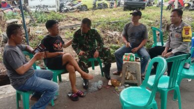 Bahu membahu Anggota Koramil 12/Rajeg Lakukan Perbaikan Pangkalan