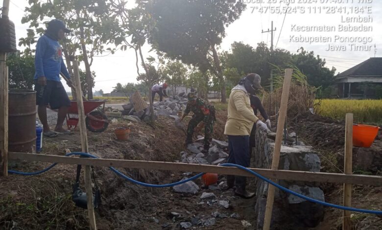 Bangun Insfrastuktur Desa, Babinsa Kodim 0802/Ponorogo Bantu Warga Buat Talud