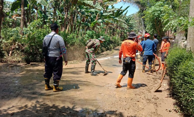 Banjir Rendam Desa Ngares Trenggalek, TNI-BPBD Sigap Bersihkan Lumpur Pasca Genangan