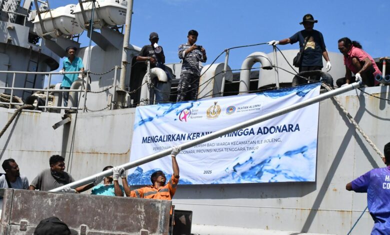 JAKARTA || Koranprogresif.id – Unsur Alutsista TNI AL yakni Kapal Perang Republik Indonesia Teluk Ende (KRI TLE)-517 yang membawa material revitalisasi pipa saluran air untuk wilayah Kecamatan Ille Boleng tiba di Dermaga Terong, Kecamatan Adonara Timur, Kabupaten Flores Timur, Provinsi Nusa Tenggara Timur (NTT), Minggu (13/07).