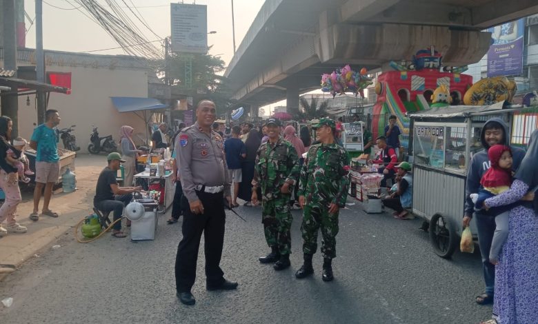 Serka Sanuri bersama dua rekanha memantau kegiatan Car Free Day bertempat di Plyover Jalan Raya Serang Desa Telaga Sari Kecamatan Balaraja Kabupaten Tangerang, Minggu (19/07/2025).