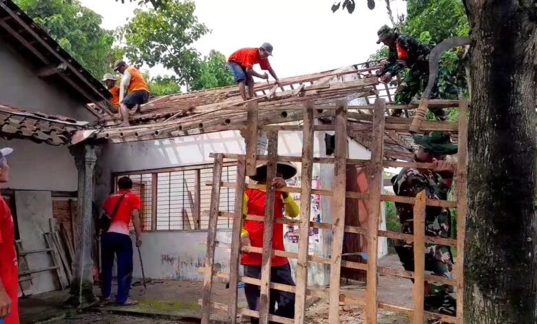 Bantu Warga, Anggota Kodim Ponorogo Ikut Kerja Bakti Renovasi Balai Pertemuan